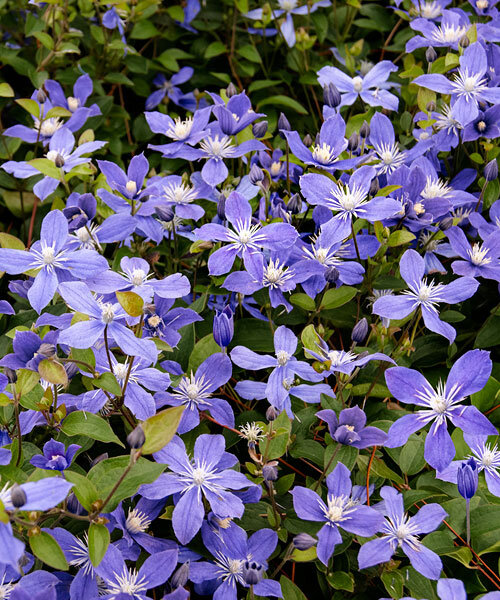 Изящная, довольно компактная лиана, которая в сезон буквально покрывается цветками с четырьмя лепестками. Окраска меняется постепенно: от сине-фиолетовой в начале цветения до нежно-голубой к концу.